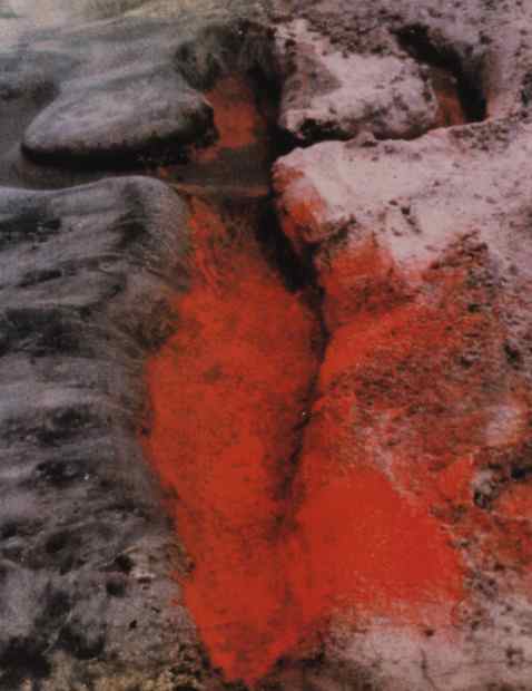 Trabalho de Ana Mendieta sobre a areia: ausência torna presente a idéia de corpo.